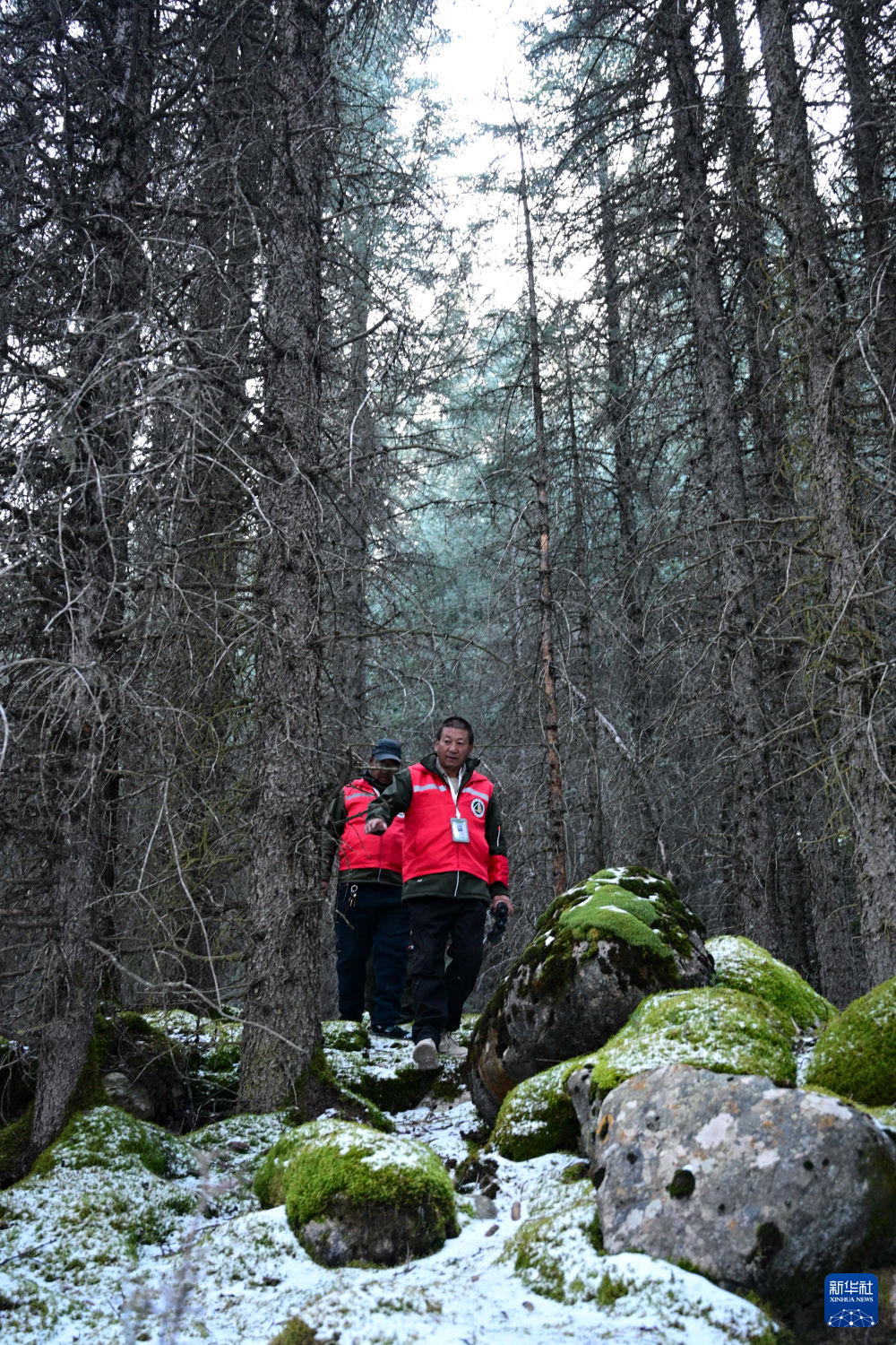 11月8日,护林员在青海省海北藏族自治州祁连县阿咪东索林区内巡护。新华社记者 齐芷玥 摄